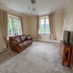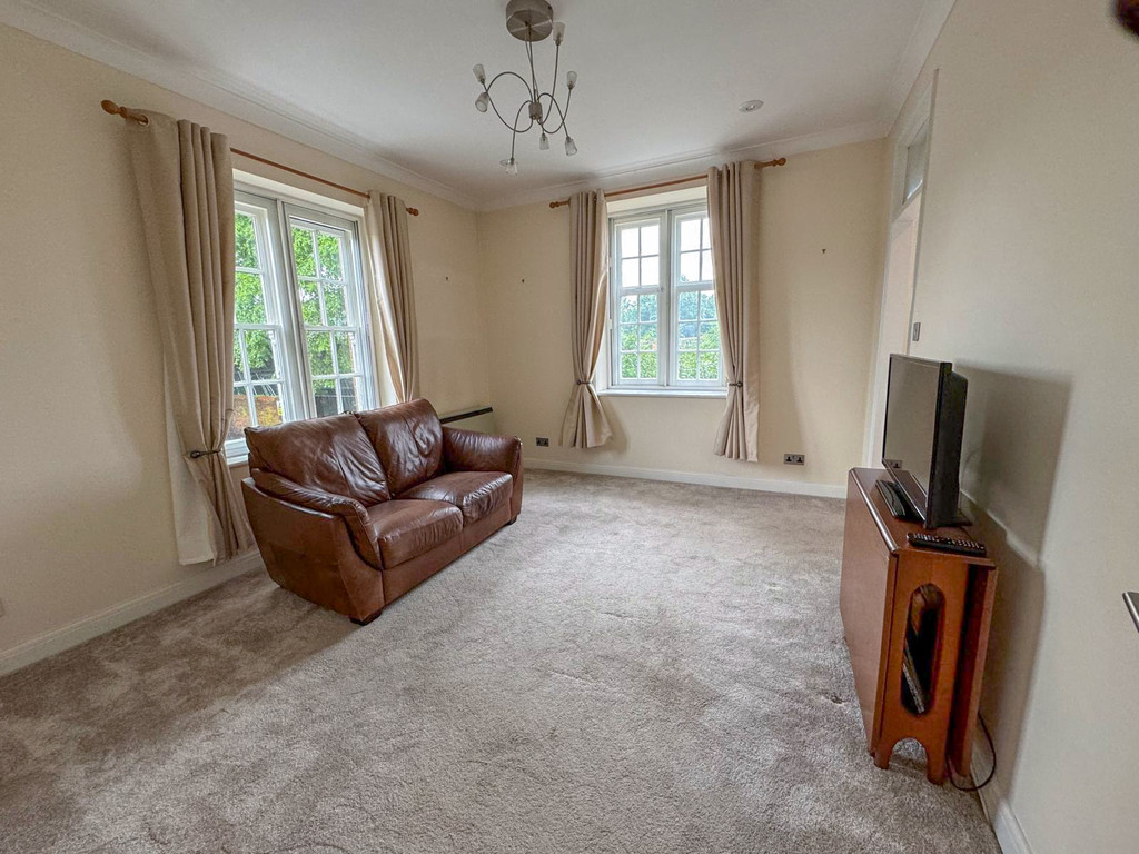 LIVING ROOM Cosy carpeted living room with dual aspect windows overlooking extensive communal gardens.