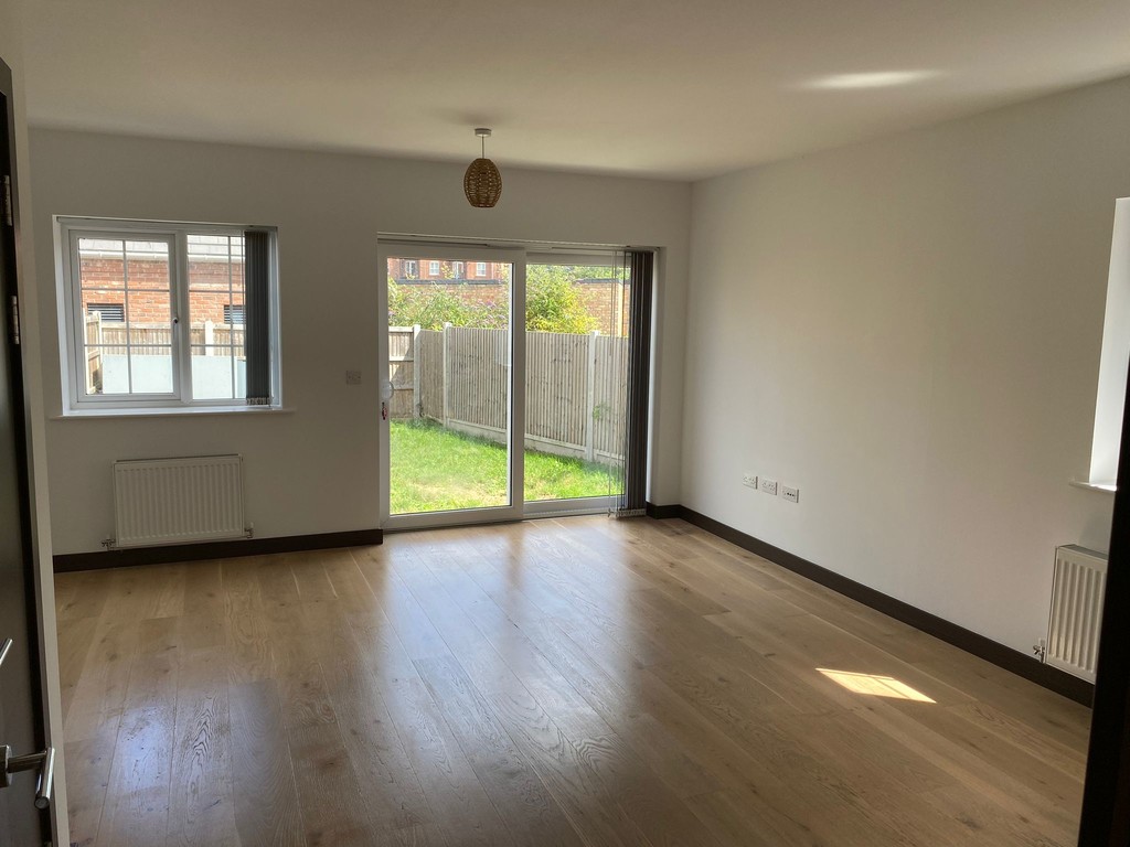 LOUNGE/DINER The living room boasts wooden floors, French doors, and a window to the garden. With an additional storage cupboard.