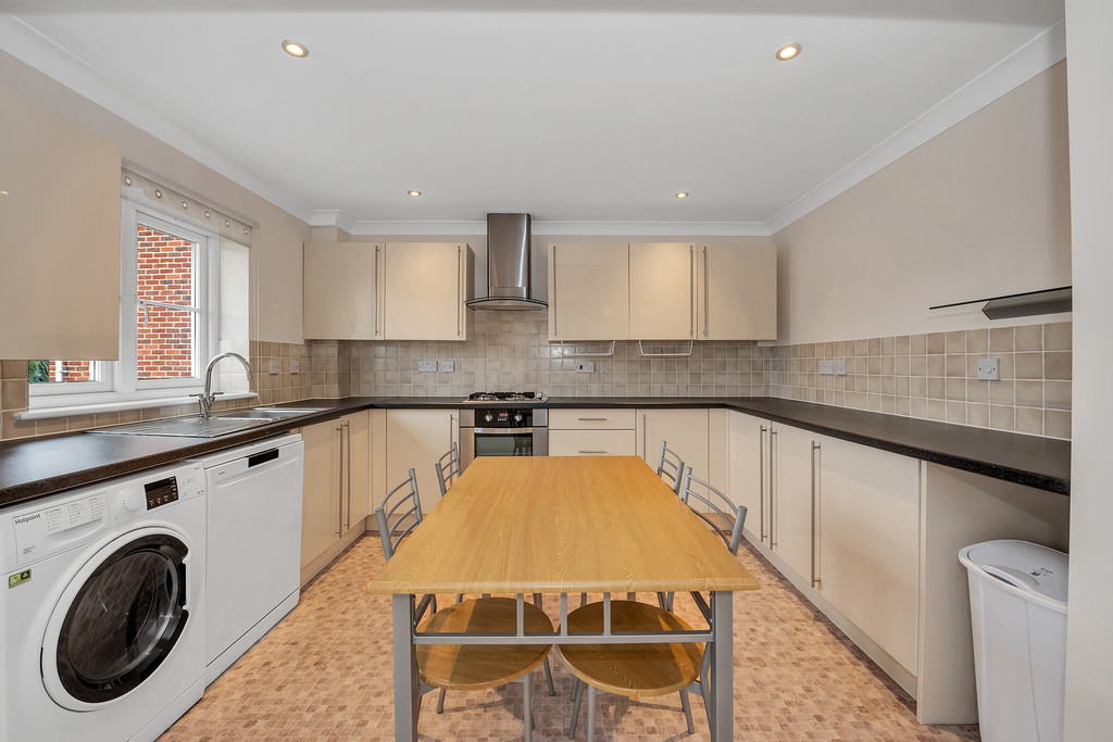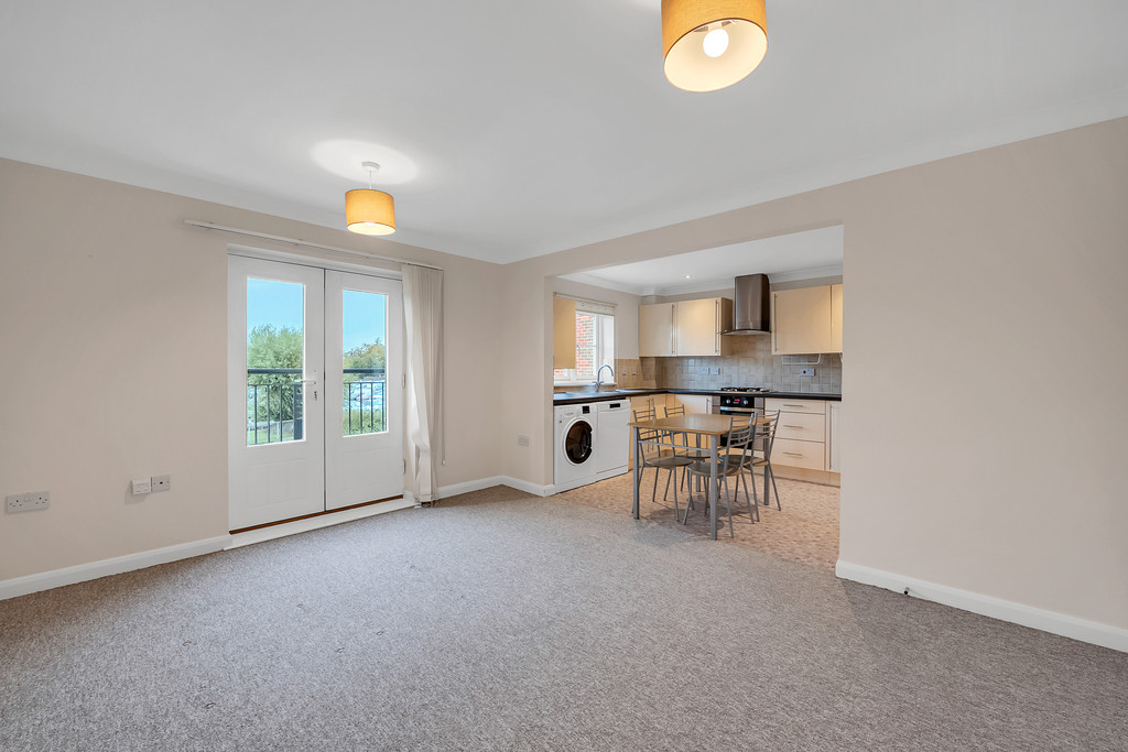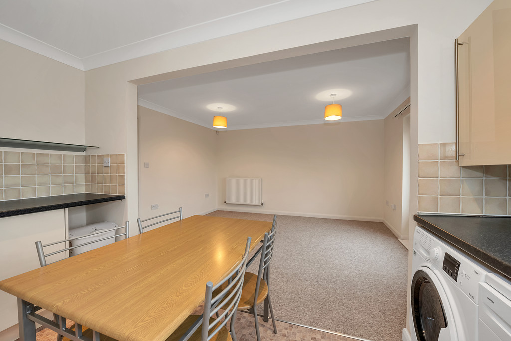 KITCHEN Open plan kitchen / living area with space for a breakfast table. Features gas hob & electric oven, built in fridge/freezer, dishwasher and washer/dryer. Lots of cupboard and worktop space. Window overlooking the river.