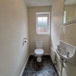CLOAKROOM Includes a WC and hand wash basin, with a double-glazed rear window, radiator, and overhead light fitting.