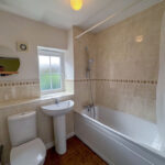 BATHROOM Modern family bathroom with bath, WC, and hand wash basin. Includes a double-glazed rear window and overhead lighting.