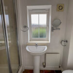 ENSUITE Includes a shower cubicle, WC, and hand wash basin. Double-glazed rear window and overhead lighting.
