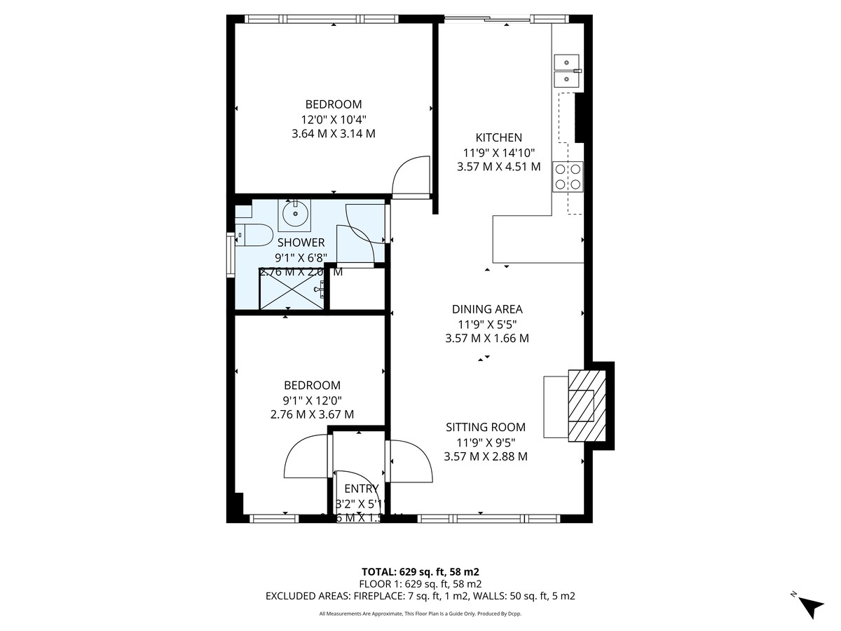 DINING AREA 11' 9" x 5' 5" (3.58m x 1.65m)