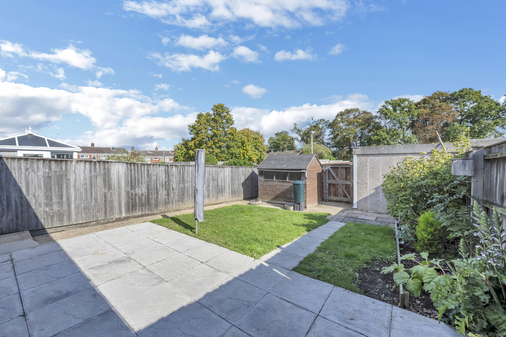 Outside the rear garden has a patio area and lawned area beyond, there is access to the garage with the driveway next to the garage. No Chain!