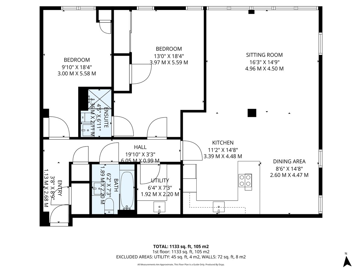 SITTING ROOM AREA 16' 3" x 14' 9" (4.95m x 4.5m)