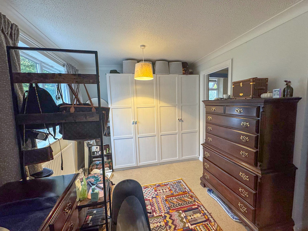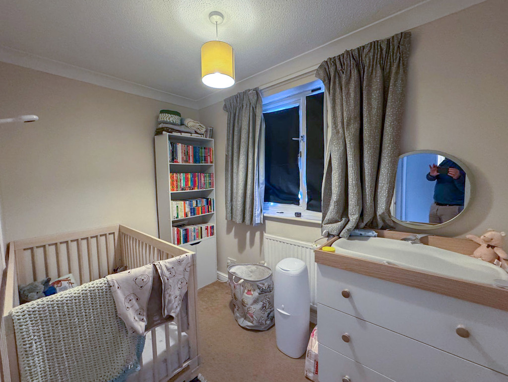 BEDROOM Smaller double bedroom with carpeted flooring and a window.