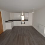 KITCHEN/LIVING ROOM This open-plan space features matching base and wall units, complemented by an integrated electric oven and induction hob. Appliances include a built-in fridge/freezer and washing machine. The room is finished with stylish wooden flooring throughout and benefits from patio doors leading to the exterior courtyard.