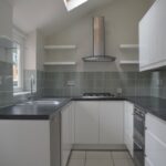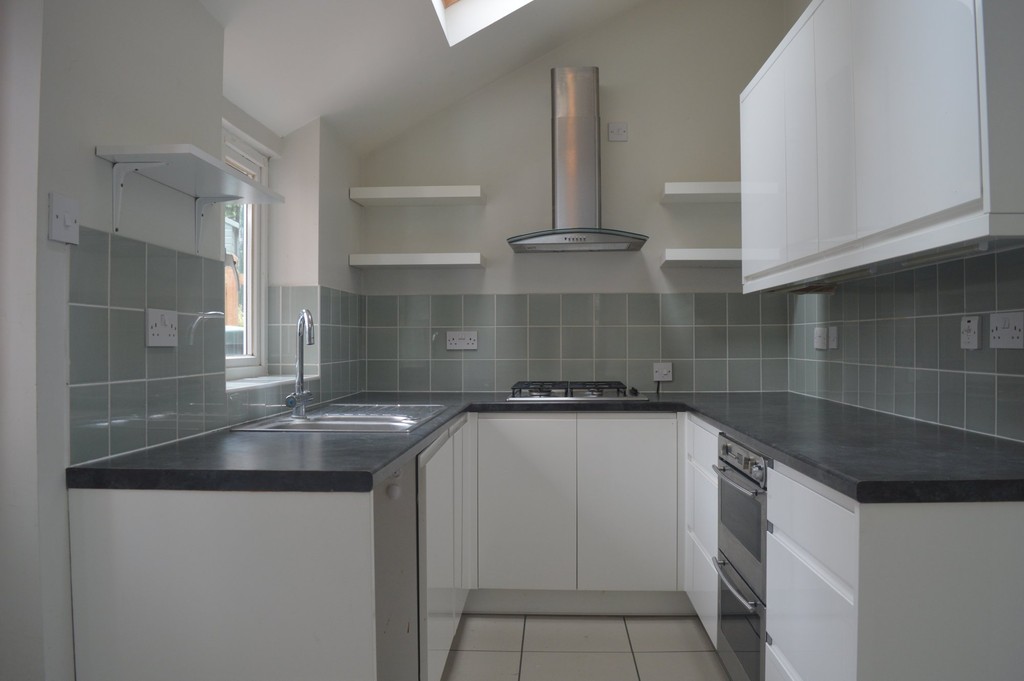 KITCHEN- Modern kitchen with door to yard. Comes with dishwasher, cooker, and space for a fridge/freezer