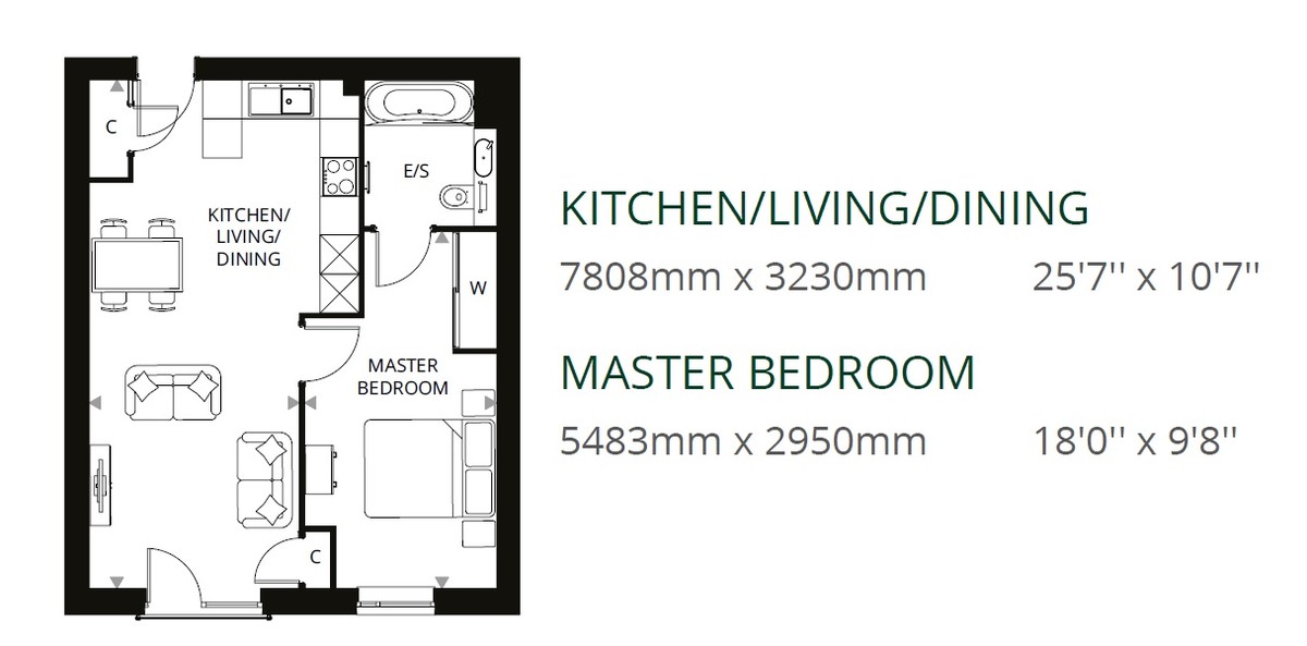 OPEN PLAN LIVING Experience modern, open-plan, and airy living in this stylish apartment. The living, dining, and kitchen areas are seamlessly integrated, featuring a kitchen equipped with an integrated fridge freezer, dishwasher, cooker, and washer dryer. Enjoy the Juliette balcony and engineered wood flooring.