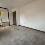 BEDROOM A generous bedroom including carpeted flooring and a built in mirrored wardrobe with ample space for an American queen-sized bed.